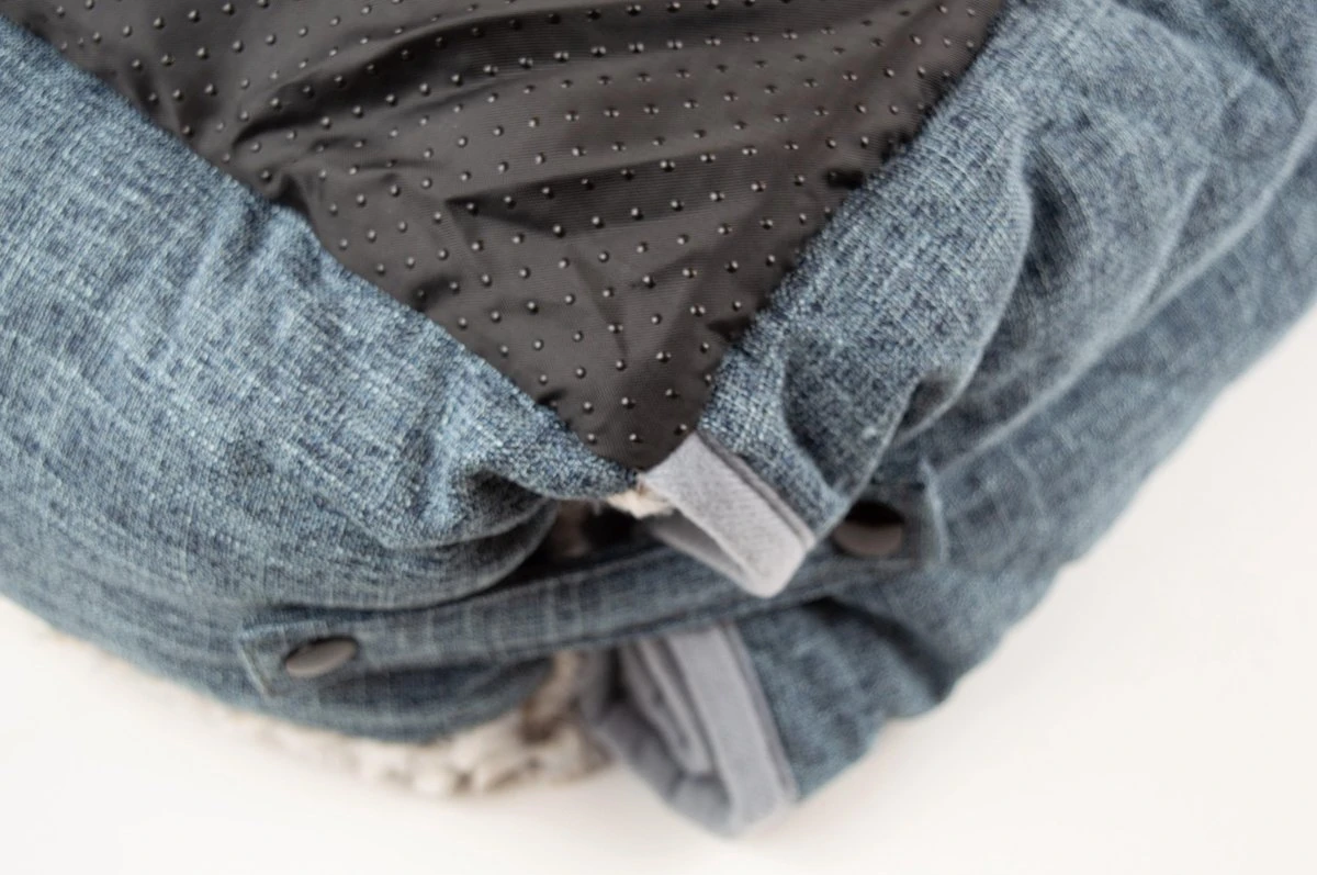 De I-CIGO handenmand wordt gemaakt van100% polyester . Het slaapgedeelte is bekleed met een luxe korte pluche vacht voor warmte en comfort. Afgewerkt met een faux suède piping en knopen in het midden en voorzien van een geborduurd I-CIGO logo.