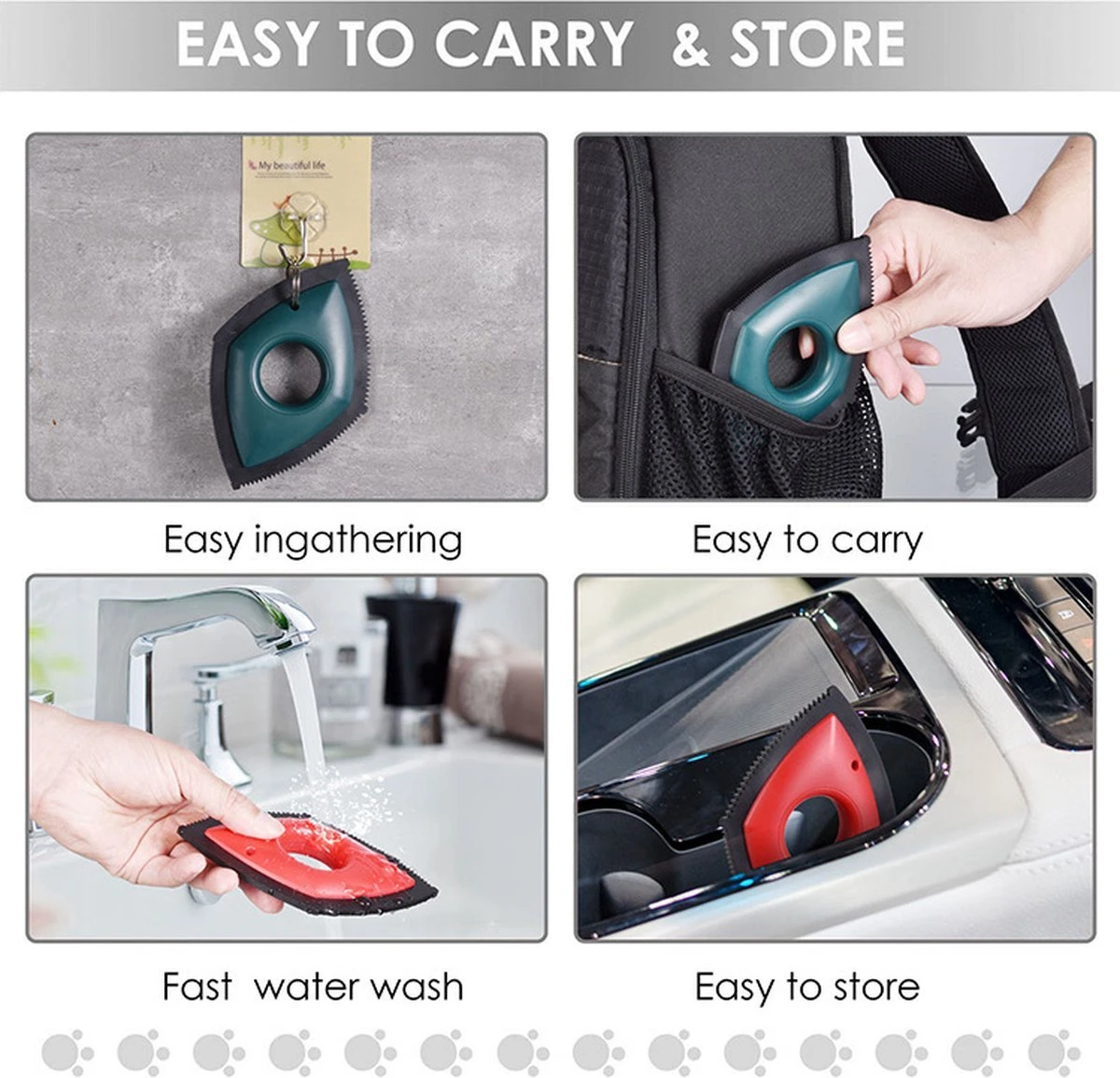 Door de vier aparte kanten kan je alle haren verwijderen van elke oppervlakte,