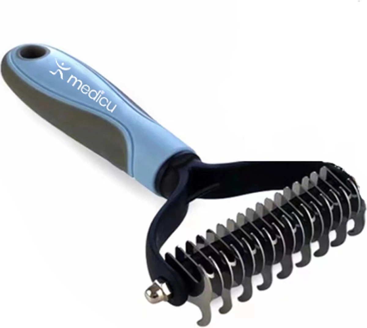 Heeft jouw hond of kat last van vervelende klitten of is jouw huisdier enorm aan het verharen? Geen probleem! Met de 2-zijdige ondervacht kam van Medicu zijn deze harige problemen verleden tijd! Onze speciaal ontwikkelde ronde messen verwijderen in een mum van tijd overtollig haar uit de ondervacht, zonder dat je harige vriend hier last van heeft. Je zult versteld staan van de hoeveelheid haar dat loslaat.