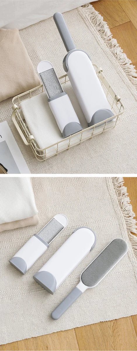 【3 IN 1 SET – 】 Je krijgt 1 x grote pluisroller, 1 x zelfreinigende basis en 1 x mini reismaat pluisroller (getoond op de eerste foto). Het is een must-have voor thuis of op reis. De mini reismaat pluisroller verwijdert niet alleen dezelfde eigenschappen als de originele dierenhaarverwijderaar, maar ook erfect om in je tas, rugzak of in je auto te bewaren en onderweg te gebruiken.