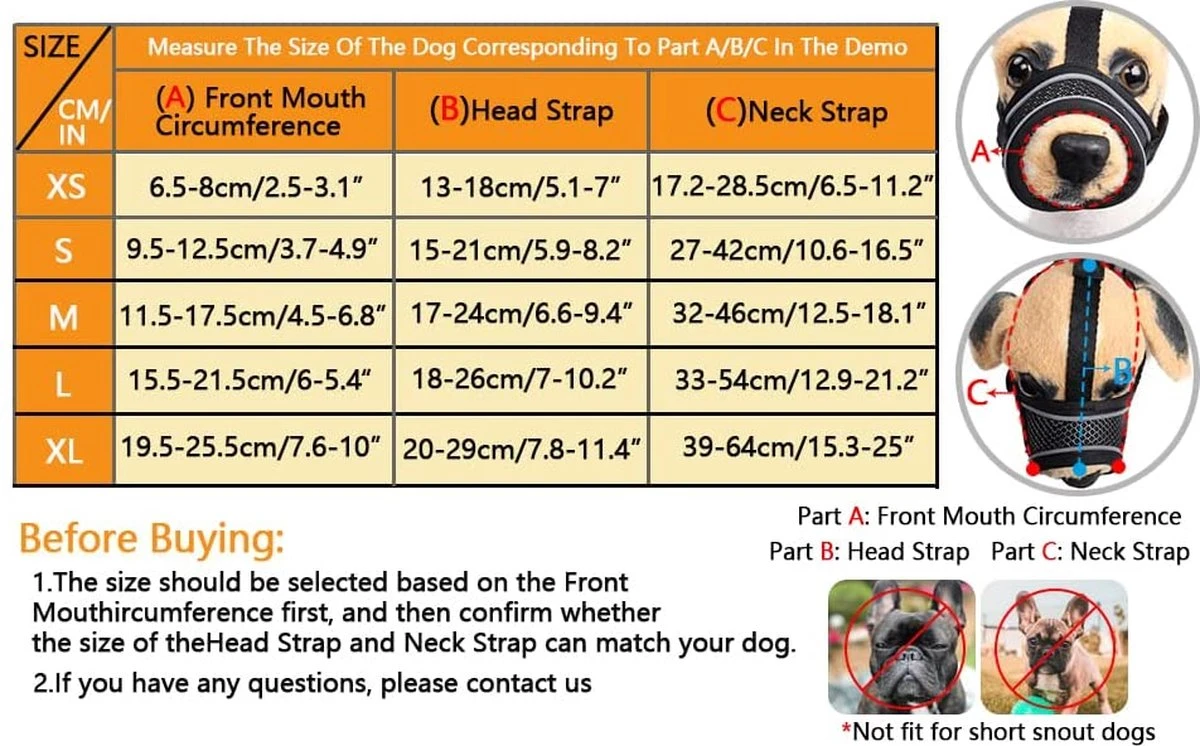 Het is zeer geschikt voor middelgrote honden met afstaande neus zoals gouden retrievers en herden. Selecteer de juiste maat volgens onze tabel en maatinstructies. Als het moeilijk is om de juiste maat te vinden, bieden wij een uitstekende klantenservice en doen ons best om je probleem op te lossen.